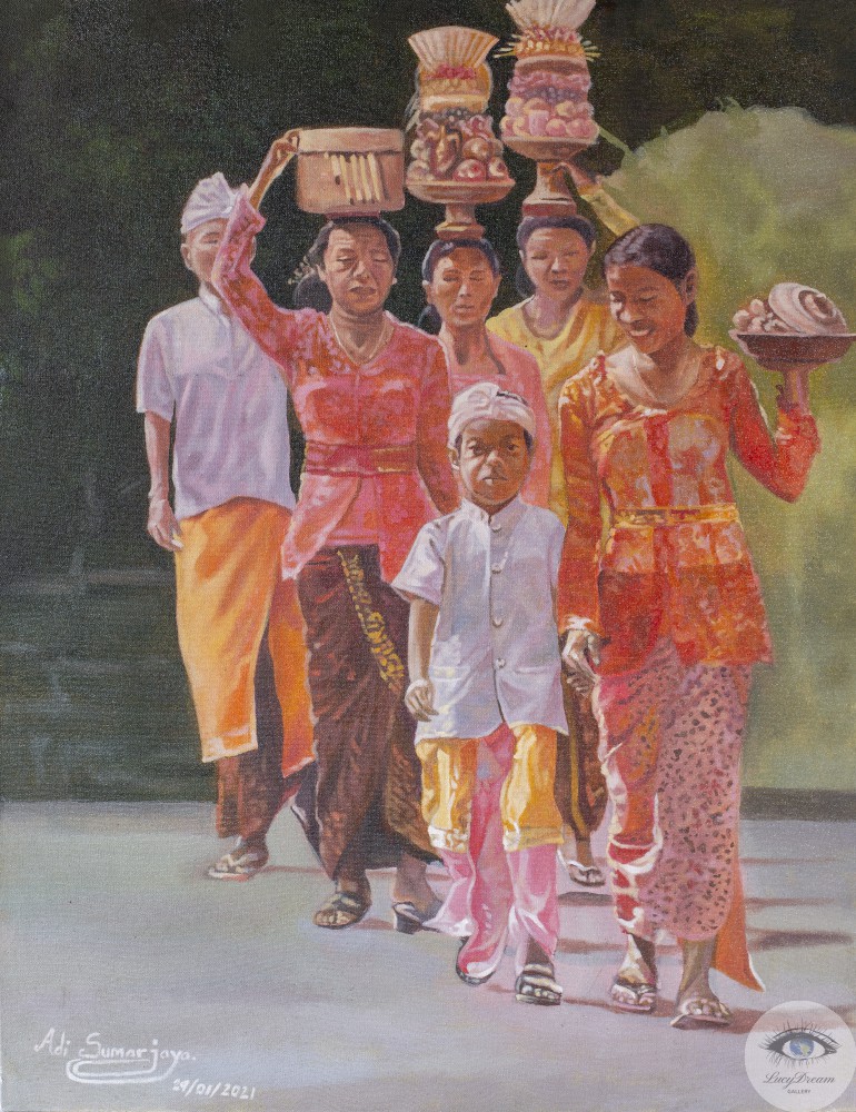 Through this interpretation and depiction of rich Balinese culture, Adi aims to illustrate the meaning of realism through the form of two-dimensional paintings. To him, art is like a real-life reality that has a process to create a piece of art.